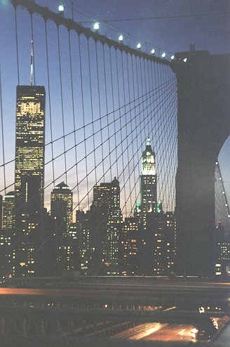 A view from Brooklyn Bridge at night